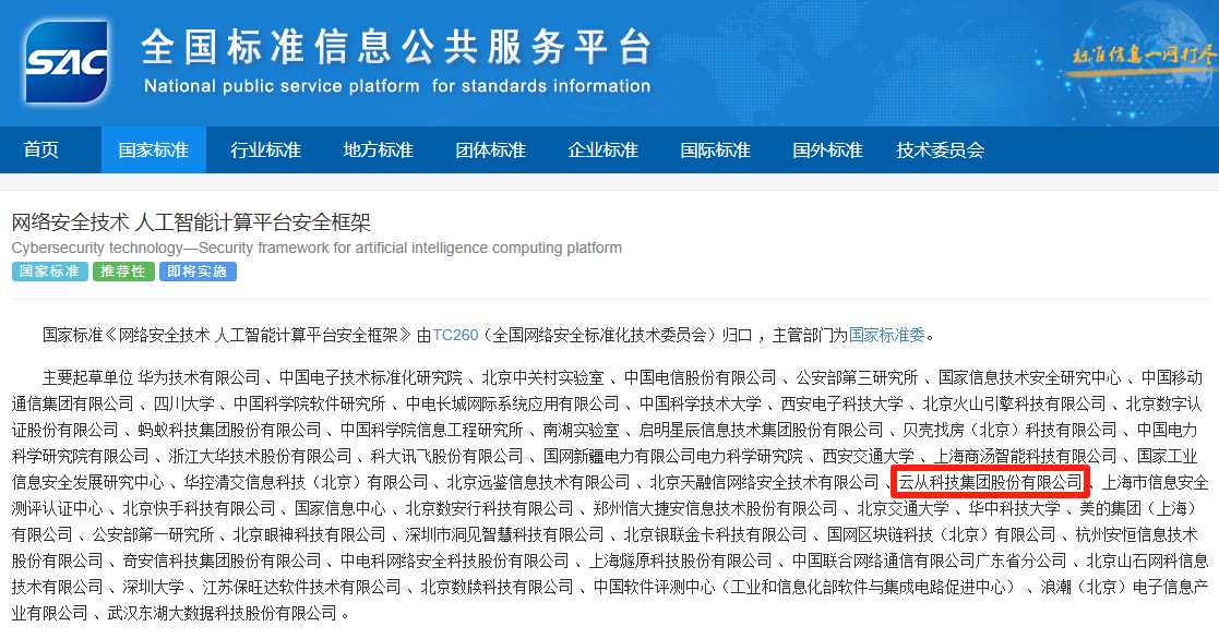近日,國家標準GB/T 45958-2025《網絡安全技術 人工智能計算平臺安全框架》正式發(fā)布。該標準由全國網絡安全標準化技術委員會歸口管理,華為技術有限公司牽頭,云從科技作為核心起草單位之一,深度參與了標準制定工作。 這項將于2026年2月1日正式實施的國家標準,為人工智能計算平臺建立了系統(tǒng)化的安全框架,規(guī)定了安全功能、安全管理和角色安全職責,將有效應對硬件漏洞、訓練數(shù)據泄露、對抗樣本攻擊等新型安全威脅。